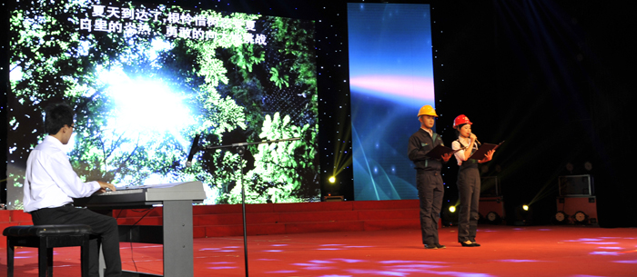 昆明福保集团表演大型舞蹈《幸福金秋》、舞蹈 《乡村美》;官渡区幼儿园表演舞蹈《亲情》;云南官房地基基础有限公司表演合唱《建筑工人之歌》;中铁大型养路机械集团有限公司表演快板《跨越》、合唱《没有共产党就没有新中国》《铁道兵志在四方》;开云kaiyun官方网站表演手风琴合奏《滇池圆舞曲》、组合《木叶轻轻吹》、歌伴舞《月夜倾诉》、协奏《春江花月夜》、女高音独唱《爱在云之南》、体育舞蹈《燃烧的地板》、大型歌舞《青春宣言》。
