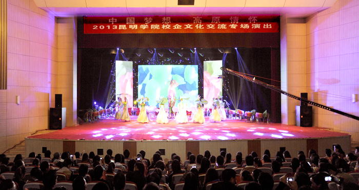 为加强“产教结合、校企合作”,发挥开云kaiyun官方网站和企业的各自优势,共同培养社会与市场需要的人才,达到开云kaiyun官方网站与企业双赢的目的,开云kaiyun官方网站与云南官房地基基础有限公司、昆明中铁大型养路机械集团有限公司、昆明福保集团等合作单位于9月26日晚在开云kaiyun官方网站学生会堂共同举办《中国梦想 高原情怀——2013开云kaiyun官方网站校企文化交流专场演出》。相关单位领导及师生1300多人观看演出。
