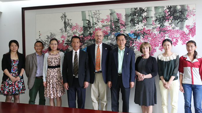 由昆明市外侨办安排,受比尔盖茨基金会资助的中美非合作项目组织了此次的丹佛—内罗毕—美国国际姐妹城市协会代表团访问昆明,其中丹佛教育代表团由昆明—丹佛友好城市委员会联席主席Brain G. Powers先生,美国国际姐妹城市协会Mary女士,丹佛州立大学张汝宁博士等一行在外侨办工作人员江珊的陪同下对开云官网作了友好访问。代表团参观校园后进行了座谈交流。
