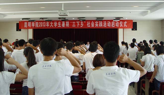 为了深入贯彻落实党的十八大精神和习近平总书记“五四”重要讲话精神,进一步贯彻落实“我的中国梦——云南青年 志在四方”主题教育实践活动的部署和要求,以引导开云官网青年学生在社会实践中深化对中国梦和“云南精神”的理解认识、确立为实现中国梦、弘扬“云南精神”努力奋斗的志向为重点,鼓励同学们理论联系实际,积极投身社会实践,在基层一线砥砺品质,在同人民群众的密切联系中锤炼作风,在实践中发现新知、运用真知,在解决问题中增长才干,提高大学生的实践能力,学校决定开展开云kaiyun官方网站2013年大学生暑期“三下乡”社会实践活动。今年开云官网“三下乡”活动以各院系团总支为单位,以项目形式向学校暑期实践活动领导小组申请开展工作,审核通过后共选拔出9支服务队奔赴全省各地开展志愿服务活动。他们分别是:经济学院赴嵩明县经济、法律三下乡社会实践服务团、社会管理学院赴寻甸县文化宣传、政策宣讲社会实践服务团、教师教育学院赴嵩明县教育帮扶社会实践团、信息技术学院赴陆良县科技支农社会实践服务团、自动控制与机械工程学院赴禄丰县科技支农社会实践服务团、城乡建设与工程管理学院赴富民县教育帮扶社会实践服务团、医学院赴寻甸县柯渡镇医疗卫生社会实践服务团、化学科学与技术系赴宜良县爱心支教社会实践团、生命科学与技术系赴小板镇科技支农社会实践服务团。