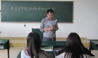 5月17日下午,外国语学院在博文楼1302组织2013年考研交流会。学院党总支副书记杨为宗、负责就业的张萍老师、2009级考取研究生的同学代表、2010级和2011级准备考研及对考研感兴趣的同学参加会议。