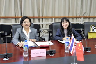 经过会谈,双方加深了对彼此的了解,明确了即将开展的合作项目。会谈后,双方互赠纪念品。Dr. Chitriya Pinthong副校长一行还参观了校园,优美的校园环境给泰国来宾留下了深刻的印象。
