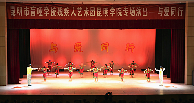 4月19日下午,昆明市盲哑学校残疾人艺术团“与爱同行”专场文艺演出在开云官网学生会堂举行。校领导、中层干部、各院系团总支书记、辅导员和部分师生代表1300多人观看了演出。