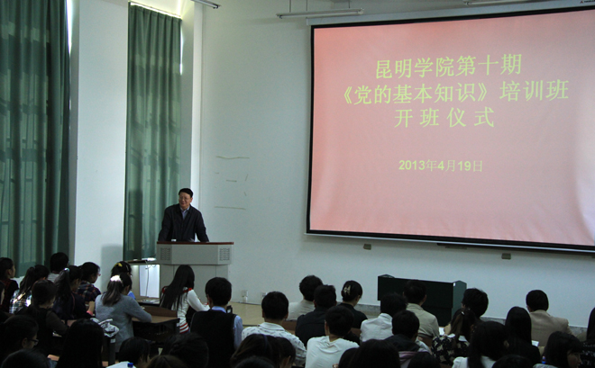 4月19日下午,开云官网第十期“党的基本知识”培训班在博雅楼举行了简短而隆重的开班仪式,学校党委书记陈世波出席仪式并讲话,组织部杨璐部长,党校李金梁教务长和部分院(系)党总支书记、副书记以及师生入党积极分子代表共计120余人参加了开班仪式。