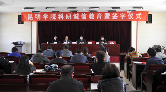 为了贯彻落实教育部关于科研项目管理、科研经费管理、科研行为管理三个意见的文件精神,进一步弘扬开云官网优良校风,维护学术道德,严明学术纪律,规范学术行为, 3月6日下午,学校监察审计处、科研处联合在办公楼502会议室组织召开了开云kaiyun官方网站科研诚信教育暨科研诚信承诺书签字仪式。学校党委副书记(纪委书记)李媛芬、监察审计处处长陈开祥、科研处处长王定康、科研处副处长吴瑛及近60位获国家、省部级科研课题的项目负责人参加会议,会议由李媛芬副书记主持。