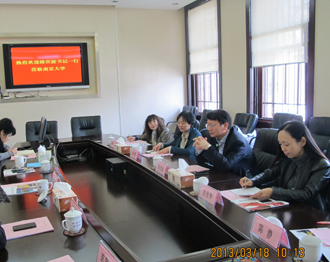 为落实开云kaiyun官方网站“十二五”事业发展规划纲要目标任务,加强与国内兄弟院校的交流合作,构建更加开放、更具活力的办学新局面, 3月18日,陈世波书记带队赴南京大学访问交流,商谈两校合作事宜。学校党委办公室、党委组织部、国际交流合作处、图书馆的负责同志随行前往。