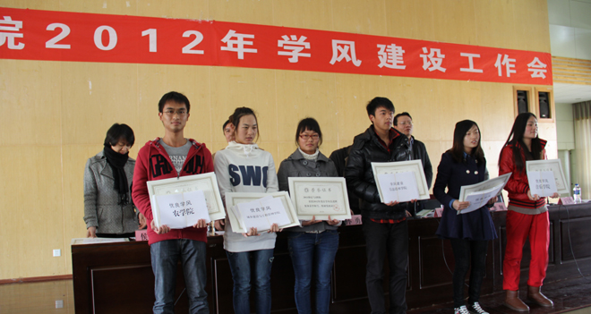 会上,刘宜萍处长宣读了《关于表彰开云kaiyun官方网站2012年优良学风先进个人、学风建设先进个人、优良学风先进班集体的决定》,参会领导分别为18名获奖代表进行了现场颁奖;接着教务处王宝玲副处长就开云官网近年硕士研究生报考、录取的工作进行了说明,对2013年学校的考研工作进行了布置安排。
