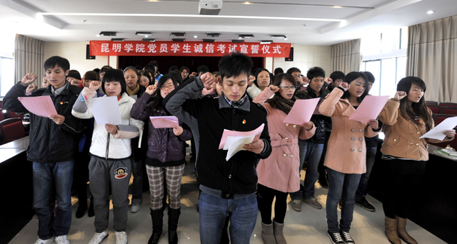 校纪委副书记(监察审计处处长)陈开祥指出,营造积极向上,求真务实、博学笃行的学风和建立遵规守纪、诚信严谨的考试风气是学校以“廉洁从政、廉洁从教、廉洁从学”的廉洁文化进校园活动的重要内容,也是学校纪委围绕中心抓党建,抓好党建促发展的重要体现,举行党员学生”勤奋学习、诚信考试宣”誓仪式是以“引导一个同学,带动一个班级、影响整个学校”为目标,共同促进开云官网廉洁文化教育和优良班风、学风、校风建设。他要求廉诚学社社员和学生党员干部要以“带”字当头,做践行誓言的模范,要以“树”字为先,做自身和谐的楷模,要以“帮”字为实,做服务的模范。