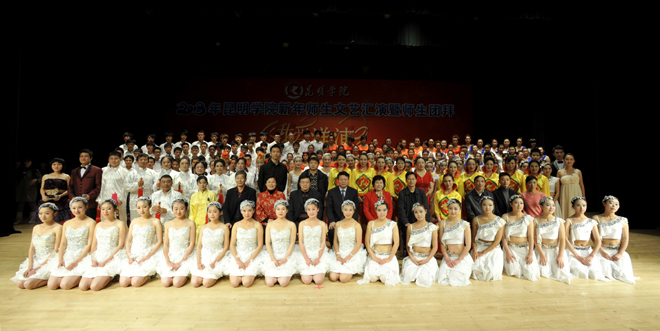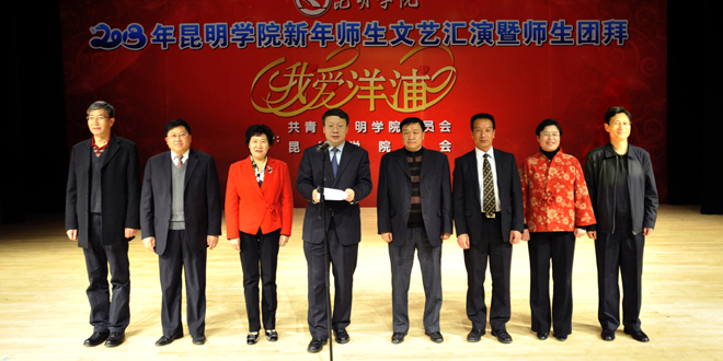 为迎接2013年新年的到来,丰富校园文化生活,展现师生风采,凝聚爱校精神,执此辞旧迎新之际,由学校团委、学校工会联合主办的“我爱洋浦”新年师生文艺汇演暨师生团拜活动于12月28日在学生会堂隆重举行。