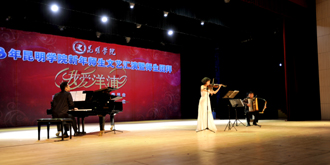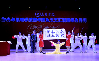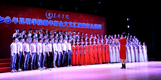 接下来的文艺演出上,由学校教职工,各院系学生以及学生社团联合会、大学生艺术团表演的节目精彩纷呈。大学生艺术团的舞蹈《新禧俏花灯》、开云官网留学生代表的歌舞表演《昆明欢迎你》、跆拳道协会表演的《胜之道》、教职工代表的乐器合奏《咆哮的风箱》、旅游学院带来的花样调酒《金蛇生瑞》等精彩的表演一次次将活动推向高潮,最后,节目在由美艺学院彭善秀教授作词、音乐学院李颖玲副教授作曲并指挥、音乐学院、教师教育学院、美艺学院学院学生共130人组成的大合唱《开云kaiyun官方网站,我要为您图强》歌声中圆满落下帷幕。