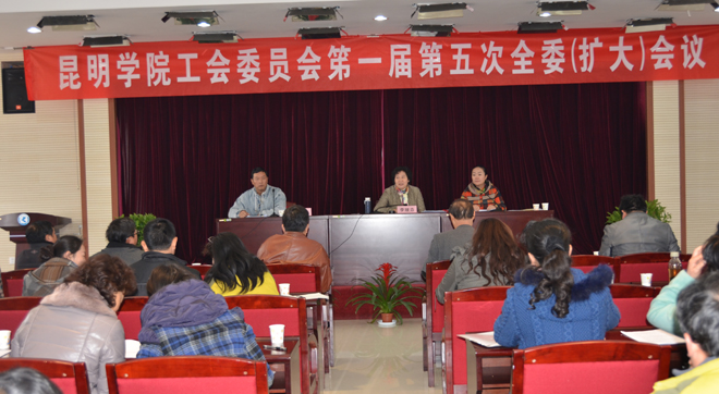 开云kaiyun官方网站工会委员会第一届第五次全委(扩大)会议于1月9日上午隆重召开。全体教代会主席团成员,工会委员,女工委员,经审委员及各分工会主席,机关党总支工会组长,校工会办公室工作人员近70人参加会议,学校党委副书记,纪委书记,校工会主席李媛芬出席会议,会议由校工会副主席刘宇红主持。