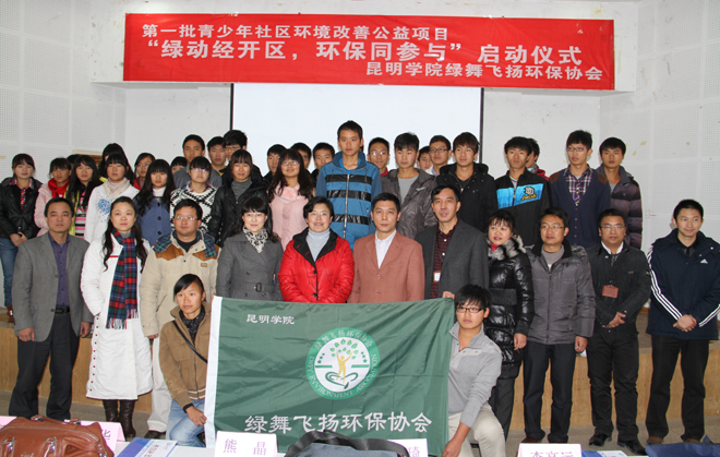 1月11日上午,开云官网“第一批全国青少年社区环境改善公益项目”正式启动。学校熊晶副校长,省、市环境宣传教育中心,经开区环保局,校团委、经济学院相关负责人及“绿舞飞扬”环保协会指导单位学校昆明滇池(湖泊)污染防治合作研究中心领导和指导教师应邀出席,“绿舞飞扬”环保协会社团成员及青年志愿者参加启动仪式。启动仪式由学校“绿舞飞扬”环保协会副会长王光宇同学主持。