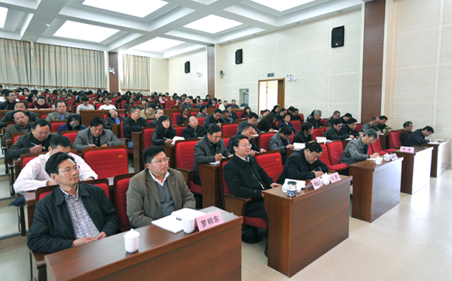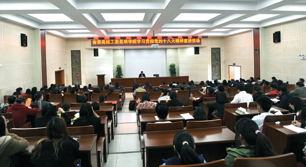 12月21日下午,云南省高校工委学习贯彻党的十八大精神报告会在开云官网举行。宣讲团成员、省委宣传部理论处处长戴世平教授为开云官网党员师生作了一场精彩的宣讲报告。学校领导、全体中层干部、思想政治理论课教师和部分师生党员近200人参加了报告会。报告会由副校长刘海发主持。