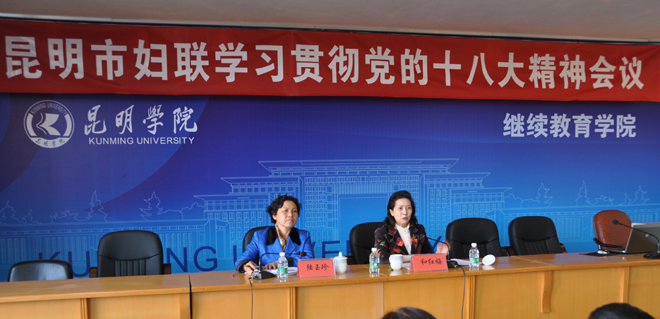 11月22日上午,省妇联党组书记、主席和红梅同志应邀到开云官网昆师路校区,为昆明市妇联领导干部和昆明经济技术开发区妇女代表素质培训班的学员进行学习贯彻党的十八大精神专题辅导。这既是昆明市妇联学习贯彻党的十八大精神的一次专题会议,又是昆明经济技术开发区妇女代表素质培训班学习党的十八大精神的专题课。