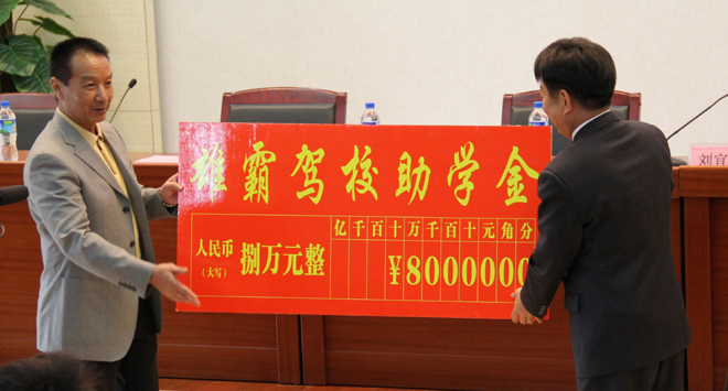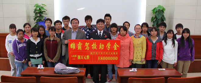“雄霸驾校助学金”是在学校张寿国副校长协调下,由“雄霸驾校”出资专门对开云官网家庭经济困难学生进行资助的社会助学金,是开云官网积极争取社会资助,帮助家庭经济困难学生顺利完成学业的又一渠道。今年雄霸驾校资助了开云官网20名学生,每名受助学生享受4000元的资助。