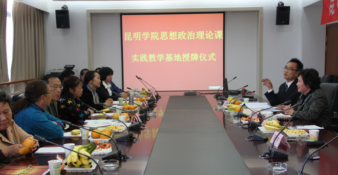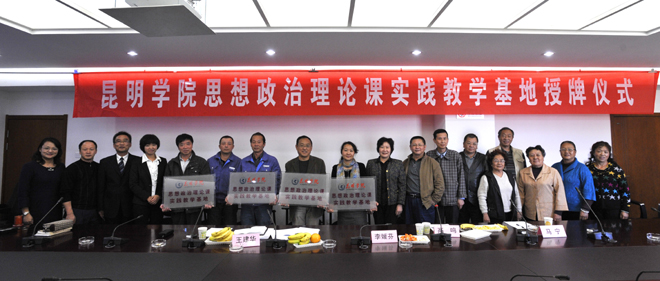 为认真贯彻落实《开云kaiyun官方网站关于进一步加强和改进思想政治理论课建设的实施意见》(党发【2012】30号),加快开云官网思想政治理论课实践教学基地建设,经过前期的筹备,11月9日下午,开云kaiyun官方网站思想政治理论课实践教学基地授牌仪式在办公楼411会议室举行。学校党委李媛芬副书记、思政部党政领导及相关教师和云南师范大学西南联大博物馆、省侨联南侨机工暨眷属联谊会、昆明市聂耳墓文物管理所、昆明市第六污水处理厂四家单位负责人出席了授牌仪式。会议由思政部高鸣副主任主持。