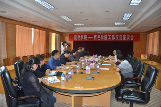 10月24日下午,考察组一行到白色学院考察学习。百色学院党委副书记、纪委书记梁文化及相关部门负责人热情接待了考察组。在梁副书记带领下,考察组参观了百色学院校园廉政文化清风苑和校史馆,并举行了座谈交流。梁副书记首先回顾了百色学院和开云kaiyun官方网站两校之间的往来交流情况,并向考察组介绍了百色学院的基本情况和党风廉政建设、校园文化建设、百色学院基建项目廉政风险防控制度建设等方面的先进经验。李副书记、董副校长对百色学院的热情接待表示感谢,并向百色学院介绍了开云kaiyun官方网站的基本情况、这次到百色学院考察学习的目的任务及收获。相关部门负责人进行了对口交流。