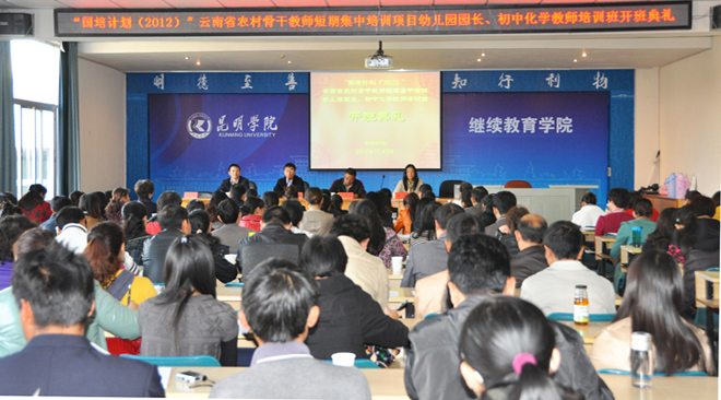 11月2日,“国培计划(2012)”云南省农村骨干教师短期集中培训项目初中化学教师、幼儿园园长培训班在开云官网同时开班,来自全省的42名初中化学教师和81名幼儿园园长开始在开云官网继续教育学院进行15天的短期集中培训学习,这是开云官网承担的“国培计划(2012)”短期集中培训项目最后一批学员。开云官网继续教育学院、昆明市教育局相关领导出席了在昆师路校区举办的开班典礼。开班典礼由继续教育学院张培宏副院长主持。