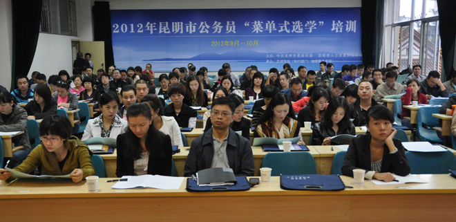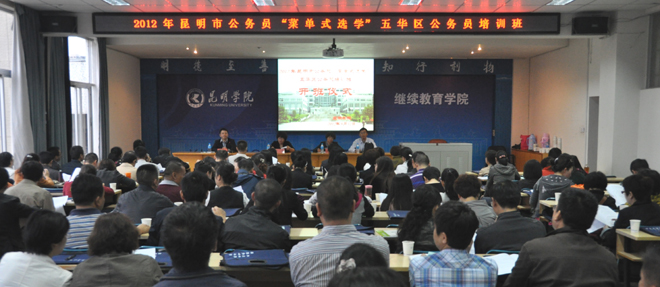 经开云官网继续教育学院的精心准备和积极申报,开云官网和云南大学、云南财经大学3所高校被确定为2012年昆明市公务员“菜单式选学”培训承办单位。除五华区公务员培训外,在接下来近两个月的时间内,开云官网还将承担来自昆明市财政局、石林县等部门和县区的400余名公务员的培训工作。