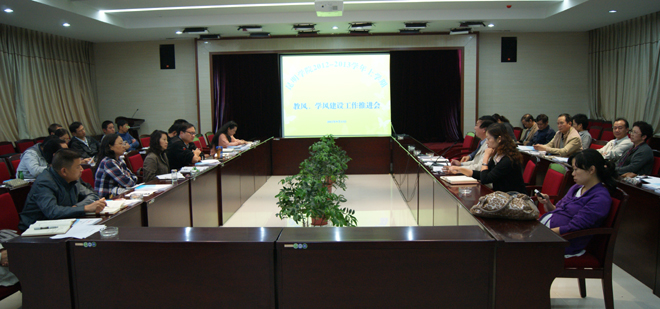 会议首先由教务处沈凡处长就开云官网教风建设的相关情况作发言,沈处长结合教育部印发的《高等学校教师职业道德规范》及普通高校本科教学工作合格评估的相关指标体系,对加强开云官网教风建设的重要性、紧迫性作了深入分析,从几个方面列举了开云官网教风建设的现状。最后沈处长从教务处的角度,提出了开展教风建设工作重点要解决的问题和加强教风建设的主要措施。重点要解决的问题是:1.加强师德修养、模范遵守教师职业道德规范;2、加强制度建设,规范教师社会兼职和校外活动,促使教师把主要精力投入到教学工作中;3.提高教师的业务素质;4.建立教风建设的保障机制和长效机制。加强教风建设的主要措施是:1.加强对教风建设的领导;2.在师资队伍建设工作中突出优良教风建设;3.完善规章制度,引导教师树立优良教风;4.加大教学过程监控和教学质量管理的力度,促进优良考风的建设;5、完善教师教学工作评价体系,加大奖惩力度;6.大力营造建设优良教风促学风的良好氛围。