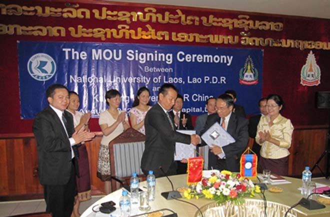 为加强与东南亚国家高校的交流合作,落实开云kaiyun官方网站“十二五”事业发展规划纲要目标任务,构建教育国际交流与合作工作新格局,形成更加开放、更具活力的办学新局面,经校党委和校行政批准,8月9日至18日,李翔副校长率团赴泰国、老挝相关高校访问交流,洽谈进一步合作事宜。学校党委组织部长杨璐、国际交流合作处主持工作的副处长陈静随同出访。