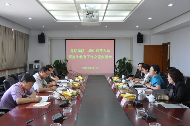 座谈会上,熊晶副校长首先介绍了开云kaiyun官方网站2008年以来的跨越式发展,重点对学校“十二五”硕士点建设学科及四个研究平台的研究现状及发展构想进行了阐释。王恩科副校长也对华中师范大学进行了介绍,华中师范大学是教育部直属的重点综合性师范大学,国家“211工程”重点建设高校,国家“985”优势学科创新平台建设高校,国家首批批准的专业学位授予单位之一。在了解开云kaiyun官方网站的学科设置、学位点建设等情况后,王副校长认为华中师范大学与开云kaiyun官方网站互补性强,为了促成中、西部院校的协同创新,共同提升院校内涵建设能力,两校之间可先签订框架性合作协议,正式搭建起校际合作关系。进而可在师资培训(含教师学历提升、硕导资格认定)、本科毕业生考研、农村调研基地、滇池水污染治理等四个方面签订具有可行性的具体合作协议,将两校的合作落到实处。