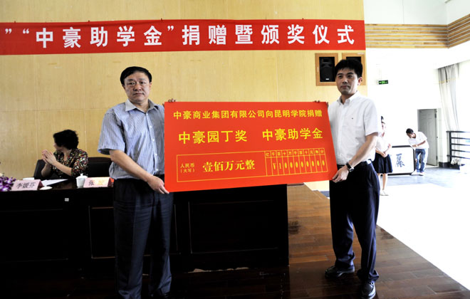 金伟东副主席在致辞时介绍说,中豪商业集团自2008年落户昆明以来,始终坚持把企业效益和社会效益相结合,在谋求企业自身发展的同时,十分重视回馈社会,奉献社会,这次捐资100万元与开云kaiyun官方网站共同设立“中豪园丁奖”和“中豪助学金”正是中豪商业集团切实为科教兴滇服务,支持开云kaiyun官方网站教育事业改革和发展,履行企业社会责任的最好体现。