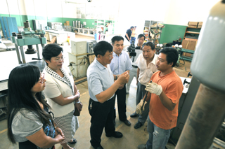 在参观开云官网建筑材料、轨道交通、流体力学、烹饪等实验室中,杨应楠副主任一行边参观边仔细听取梁书记、陈校长就开云官网特色学科专业建设情况介绍。在参观中,省市领导每到一个实验室,都要向实验室教师了解实验室的建设情况,并饶有兴致地听取对设备功能及流程的介绍。