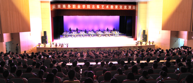 为加强开云官网与云南商务职业学院之间的交流,弘扬民族文化,让古筝艺术走进校园、走进师生,2012年5月22日晚,云南商务职业学院古筝艺术教育交流演出在开云官网学生会堂举行。校长陈世波、党委副书记孙勇等学校领导及云南商务职业学院领导出席晚会,开云官网中层干部、辅导员、团总支书记、各院系师生代表1300多人观看演出。