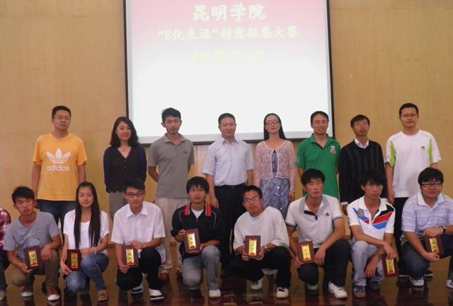 本次 “E化生活”创意作品征集大赛颁奖仪式在惟行楼1501举行。校团委组织部部长沈嘉,信息技术学院党总支书记雷新华、副书记周义方、团总支书记王玉见,生命科学与技术系团总支书记周宇,昆明睿意铂科技股份有限公司行政总裁程飚、客户经理董淑桢、销售经理杨兆熤等校内外嘉宾参加了颁奖仪式。