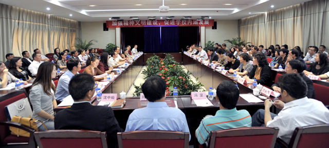 孙勇副书记代表学校做了总结发言。孙副书记首先对考核组对开云官网创建工作给予的肯定和提出的宝贵意见表示衷心感谢。他说,学校自成功创建第十二批省级文明单位以后,学校领导班子和全体师生员工认识一致、态度坚决、措施有力,积极开展了文明学校、平安先进单位等创建工作,不断在精神文明建设方面继续努力,近年来开云官网的工作取得了新的进步,形成了有声势、有影响,多层次、广覆盖,师生广泛参与、群众性精神文明建设效果显著的局面。孙副书记指出,通过今天的考评,开云官网要从更高的层面、更新的角度、更高的起点上进一步推进学校的工作,我们要始终保持积极进取的精神状态,把精神文明建设放在学校科学发展的大局中考量,把精神文明建设作为办学治校能力的要求来不断加强,坚持与时俱进、开拓创新,争取不断取得新的建设成就,创造新的建设经验,开创新的工作局面。