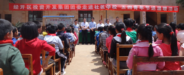 为进一步贯彻落实省第九次党代会精神,深入开展“四群教育”,积极响应省委组织部、团省委、省高校工委关于组织共产党员、共青团员进社区开展志愿为民服务活动的号召,4月27日下午,校团委联合经开区投资开发(集团)有限公司团委到经开区海子中心学校清水分校,开展了“走进社区学校五四青年节送温暖”活动。校团委书记何昊宸、各院系团总支书记代表及开云官网青年志愿者参加了本次活动。