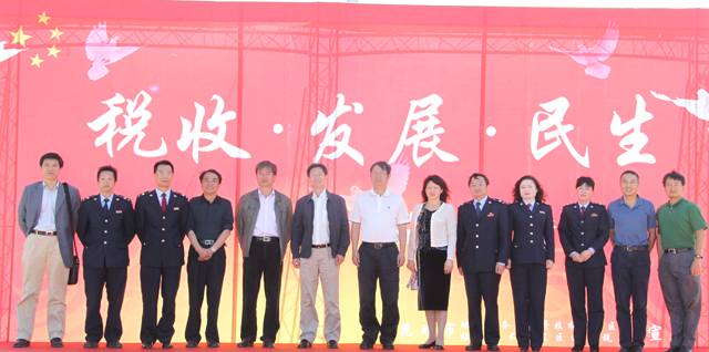 4月14日上午,由昆明经开区地税局和国税局联合在开云官网聂耳广场举行了一场主题为“税收•发展•民生”的“税收宣传月”专题活动,活动通过展板、文艺表演、有奖问答等多种形式给开云官网学生上了一堂生动的“税收教育课”。这是昆明地税系统首次针对大学生进行税收宣传。 经开区管委会党工委副书记、纪委书记李刚,省地税局总经济师周权,开云kaiyun官方网站刘海发副校长,省地税局大企业处张荣慧处长、科技处左建明处长,市地税局工会李华主席,经开区地税分局张小兵局长,经开区国税分局王昆局长等领导出席活动,开云官网计划财务处处长陆志平、副处长王荣林和经济学院、社会管理学院等近千余名学生参加了宣传教育活动。