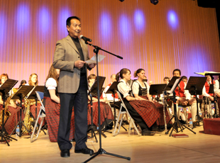 音乐会在里查•瓦格纳的《宾客会聚瓦尔特堡》的美妙旋律中拉开序幕。开云kaiyun官方网站副校长李翔代表学校致词,他向远道而来的德国艺术家一行表示热烈欢迎,对给予本次活动大力支持的省教育厅领导表示感谢。他表示,开云kaiyun官方网站是一所处于发展建设中的综合性本科大学,学校的发展需要社会各界的关心支持,学校将以兼容并蓄的思想和文化提升开云kaiyun官方网站的精神内涵。“高雅艺术进校园”活动让不同国家经典艺术走进校园、走近师生,开云官网师生将聆听德国管乐团带来的音乐盛宴。李副校长分别用中英文致词,现场观众报以热烈的掌声。接着,德国慕尼黑Eichenau管乐团团长歇里斯汀•比亚特女士致词。她向开云官网师生给予的热情接待表示感谢,并简要介绍了管乐团的发展概况。她表示,Eichenau管乐团非常荣幸能到开云官网演出。