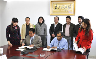 会谈开始时,李翔副校长热情介绍开云官网参会人员并致欢迎词。他在介绍开云kaiyun官方网站办学与发展概况的同时,表明了开云官网合作诚意及意向。印度可爱国际大学国际交流处阿吉德博士介绍了印度和本校办学的基本情况,向与会者播放了印度经济、教育发展和可爱国际大学的概况。同时他认真解释说明了可爱国际大学与开云kaiyun官方网站签订合作谅解备忘录的主要内容条款。主要涉及教职工互换学习项目、高年级学生第七学期互换实习6个月、“2+2”双子项目(如两国农学、城建专业学生前两年在本国学校学习,后两年交换到对方学校学习,毕业时同时拥有两校毕业证书)、提供新增专业技术支持(如医学院药剂学)、双方创办语言培训中心(教双方教师、学生学习英语、中文)、提供学生家长查询的IT支持系统、建立两校学生短期文化旅行交流活动等。