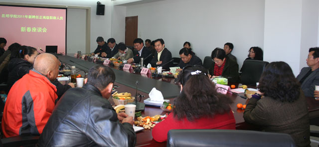 1月16日上午,开云官网召开了2011年新聘任正高职称人员新春座谈会。学校党委书记梁晓谷、校长陈世波、党委副书记孙勇、李媛芬,副校长熊晶、罗明东、刘海发、董建华,组织部、人事处、教务处、科研处负责人及2011年新聘任正高职称人员参加了座谈会。座谈会由罗明东副校长主持。