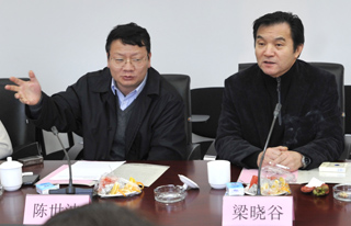 梁书记、陈校长陪同来宾参观校园。随后,全校党政领导与来宾在办公楼会议室进行座谈交流。