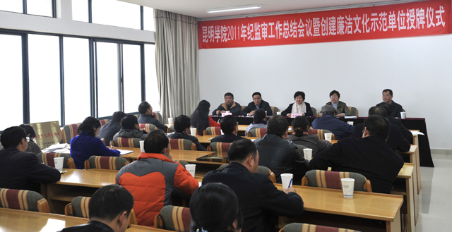 12月2日上午,学校2011年度纪监审工作总结会议暨创建廉洁文化示范单位授牌仪式在行政楼501会议室召开。校党委副书记、纪委书记李媛芬同志,校党委委员、副校长熊晶同志,以及校纪委委员、各党总支(直属党支部)书记、纪检监察员参加了会议,会议由熊晶副校长主持。