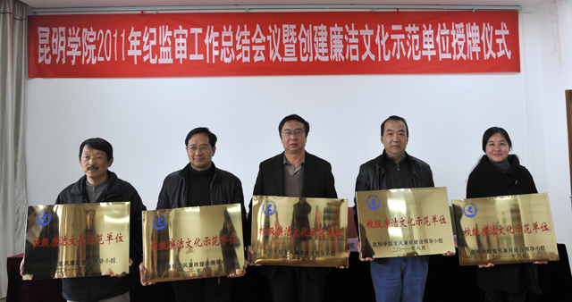会上,校纪委副书记、监审处处长施磊同志总结了2011年度纪监审计工作,对各院(系)党总支创建校级廉洁文化示范单位工作情况进行了通报,并宣读了授牌决定。参会校领导和校纪委委员分别对获2011年度创建校级廉洁文化示范单位的城乡建设与工程管理学院、社会管理学院、音乐学院、教师教育学院、信息技术学院进行了授牌。