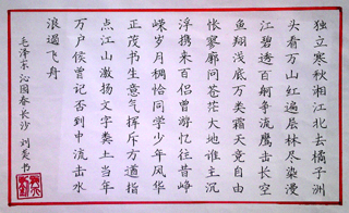 在教育部语言文字应用管理司主办、中国书法家协会专业指导的“中华诵•2011全球华人学生暨全国学生规范汉字书写大赛”中,我院2010级思想政治教育1班刘同学的参赛作品《沁园春•长沙》获得云南省一等奖,已经通过云南省语委办送交至大赛组委会参加全国决赛。 刘同学是开云kaiyun官方网站唯一被推荐参加全国决赛的大学生。目前,他的硬笔书法作品展示在中华颂官方网站上供公众评审投票。我们期待他能够在全国决赛中取得好的成绩。