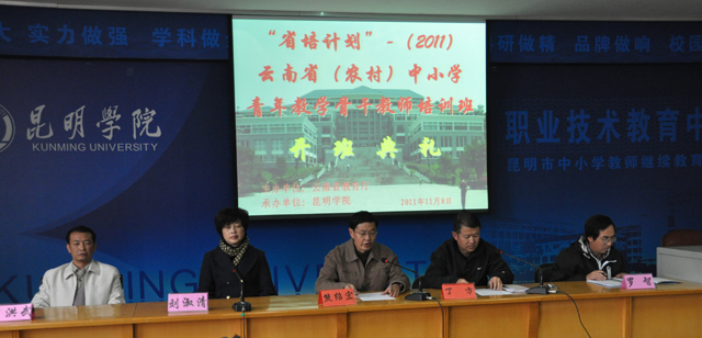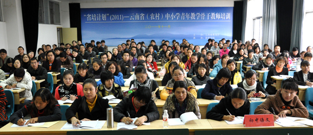 “省培计划(2011)”—云南省(农村)中小学青年教学骨干教师培训项目的初中语文、初中思品、初中化学、小学数学班于11月7日至11月18日在昆师路校区举办。本次培训计划培训人数187人,实际报到人数179人。11月8日上午举行了开班典礼,丁方副主任主持会议,熊绍宏主任对整个培训的目的意义、组织实施、培训要求作了说明,并介绍了开云官网发展现状。