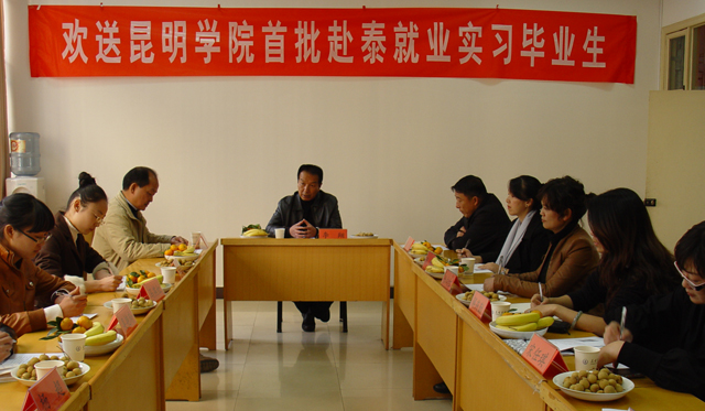 招就处处长包兴和对外交流合作处副处长哈军华介绍说,此次派遣教师教育学院学生赴泰就业实习,是在相关校领导的直接指导下,落实国家桥头堡战略,依托昆明地里优势,开拓海外就业市场,向东南亚输出劳务的第一次尝试。其中,得到了音乐学院、教师教育学院、人文学院、体育学院等许多院系的大力支持;今后,随着开云官网本科毕业生的增多,该项工作将会长足发展。