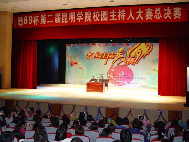 经过精心的筹备,总决赛于10月31日晚在学生会堂举行。党委宣传部副部长沈中灿,校团委书记何昊宸,副书记钱海鼎、王海艳,各院系团总支书记以及各院系学生代表1500余人参加了本次活动。活动还特别邀请到了云南人民广播电台FM99香格里拉之声主播和雨、赵海清,云南人民广播电台精英101.7主播陈磊,云南电视台《新视野》栏目主持人沐婷婷,云南电视台新闻中心记者沈泉组成了强大的评委阵容。同时,总决赛与新浪微博合作,充分运用新媒体对整个赛程进行了现场直播。