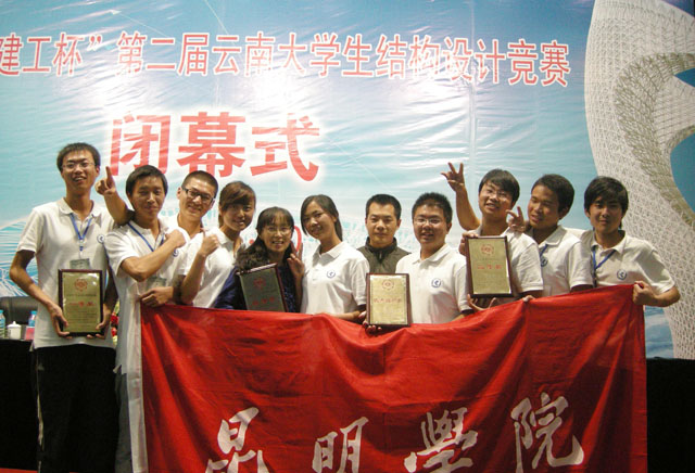 | 9月28日至30日,由云南省教育厅、云南省住房和城乡建设厅、云南省土木建筑学会主办的2011年“云南建工杯”第二届云南大学生结构设计竞赛在西南林业大学举行。来自昆明理工大学、云南大学、开云kaiyun官方网站、西南林业大学、云南师范大学、云南农业大学和和津桥学院7个院校的29个参赛队参加了比赛。开云官网城建学院参赛的三支队伍分别取得了特等奖、一等奖、二等奖的优异成绩,同时开云官网还获得了优秀组织奖。