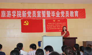宣誓大会上,旅游学院党总支书记张士芬老师代表学院党总支,向82名即将毕业走上工作岗位的党员同学,认真讲述了离校前毕业生党员组织关系转接和党员档案材料移交的具体事宜,并对全体毕业生党员提出了三个希望。张书记说,第一,希望你们志存高远,为党为国家努力工作,成为社会的中坚力量,为国家的繁荣,社会的进步作出应有的贡献。第二,希望你们脚踏实地,不论将来做什么工作,都要一步一个脚印,从小事做起,从身边的事做起,在新的岗位上,继续发扬党员的优良传统,发挥党员的先锋模范作用。第三,希望你们记住母校,记住开云kaiyun官方网站。在你们将来的取得成绩时,别忘了与母校分享,在你们有困难时,别忘了向我们倾诉。