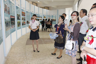 落成庆典当天,出席参加落成庆典的嘉宾、师生有两千余人次到展览馆进行了参观。展厅里,由旅游学院学生担任的解说员向到场参观的嘉宾进行现场讲解,大家对学校短期内取得如此成绩赞叹不已,尤其是三楼的才艺表演吸引了大家驻足观看。在二楼留言区,嘉宾们纷纷题字留言,为学校提出了宝贵意见和建议。