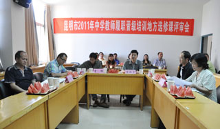 5月19日,昆明市教育局、职业技术教育中心(市中小学教师继续教育中心)在开云kaiyun官方网站昆师路校区举行专家论证会,对昆明市2011年秋季中小学教师履职晋级培训拟新增的7门地方性选修课程进行综合评审。