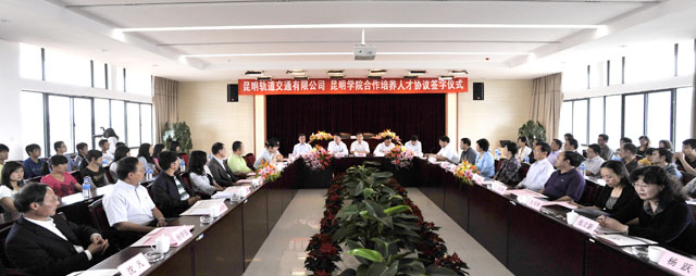罗副校长还表示:学校严格按照协议内容,团结协作,共同努力,不断提高教师教学水平,不断改善实验实训条件,不断改革探索新的教学模式与方法,努力培养出合格的、适应轨道交通工作的人才。尤其是要本着“教以致用、学以致用”的要求,把培养工作与轨道交通建设工作结合起来,探索现场教学、现场实训的新路子,着力培养“上手快、后劲足、能创新”的高素质应用型人才。相信,有市委、市政府坚强领导,合作双方的通力合作,开云kaiyun官方网站一定不辜负市委、市政府的希望,一定能够培养出合格的应用型人才,并把这一合作不断引向深入,为昆明轨道交通事业的发展作出贡献。 签字仪式得到了在昆主流媒体的关注。云南电视台,云南日报,春城晚报,云南信息报,昆明日报等媒体作为现场采访和报道。