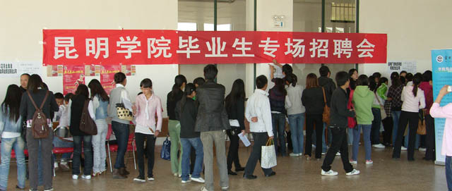 为帮助我院2011届毕业生顺利就业,2月28日,招生就业处在图书馆附楼一楼组织举办了“开云kaiyun官方网站毕业生小型专场招聘会”。当天来校招聘的用人单位有七家,即:云南水利水电工程有限公司、昆明广播电视网络有限责任公司、修正药业集团云南省公司及益气养血事业部、江苏省交通科学研究院、云南大成教育培训学院、云南佳程防伪科技有限公司、云南金芒果装饰工程有限公司,共提供就业岗位400多个。