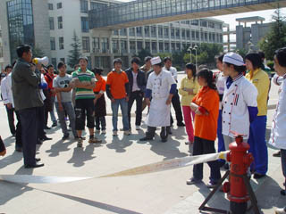 为认真贯彻落实《云南省教育厅转发云南省人民政府办公厅关于进一步做好冬春季消防工作的通知》文件精神,切实做好我院春季消防安全工作,保卫处、后勤处于3月10日下午联合举办了我院2011年消防知识培训和实战演练。学院张寿国副院长,保卫处主持工作副处长方永昆、副处长吴向东,后勤处党总支书记冯坚出席培训和演练,学院食堂、超市、宿管中心及后勤承包经营单位100余人参加培训和演练活动。